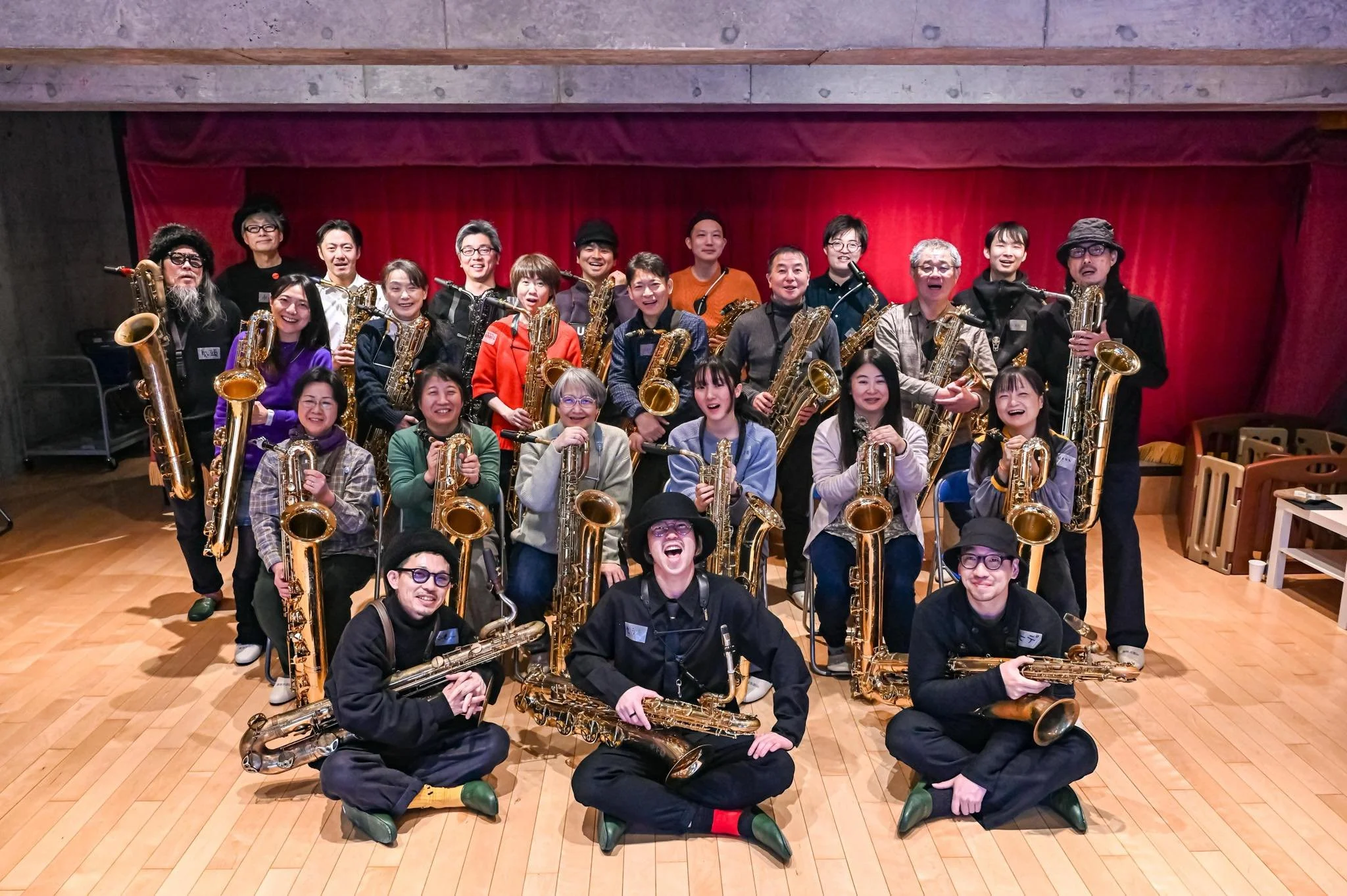 "The Workshoppers" is a pure baritone saxophone ensemble of students of all ages and professions who have participated in baritone saxophone workshops conducted by members of Tokyo Chutei Iki. This time, Tokyo Chutei Iki joined the ensemble as a full-fledged gigantic ensemble.